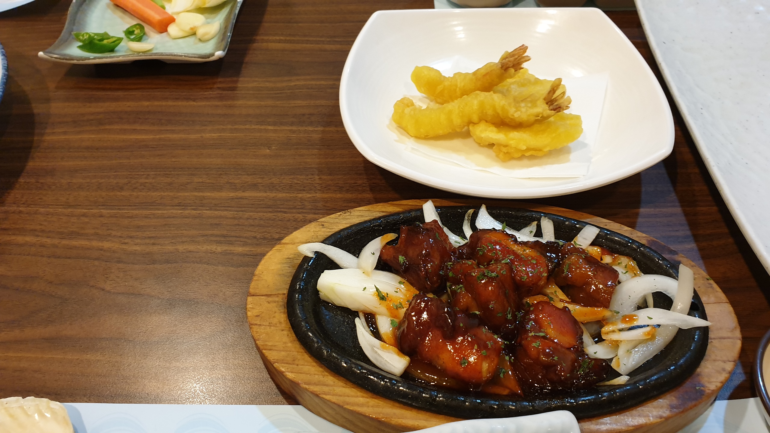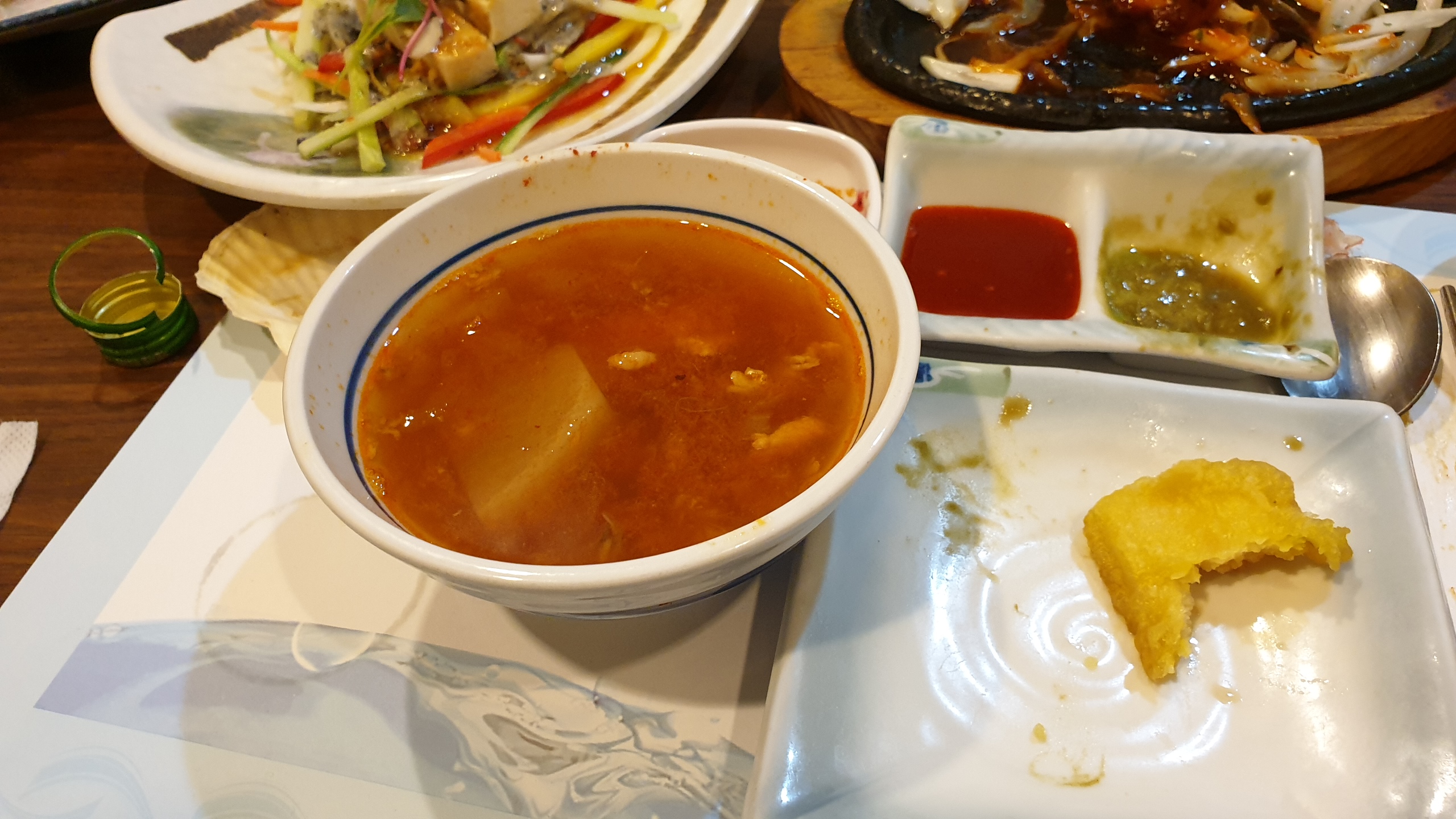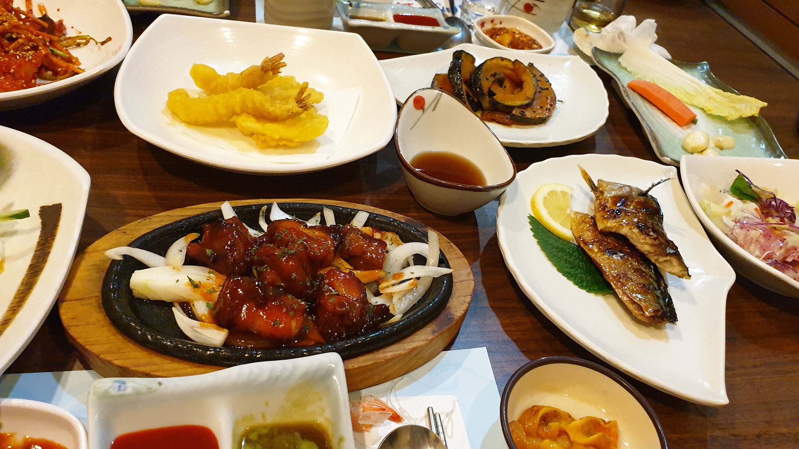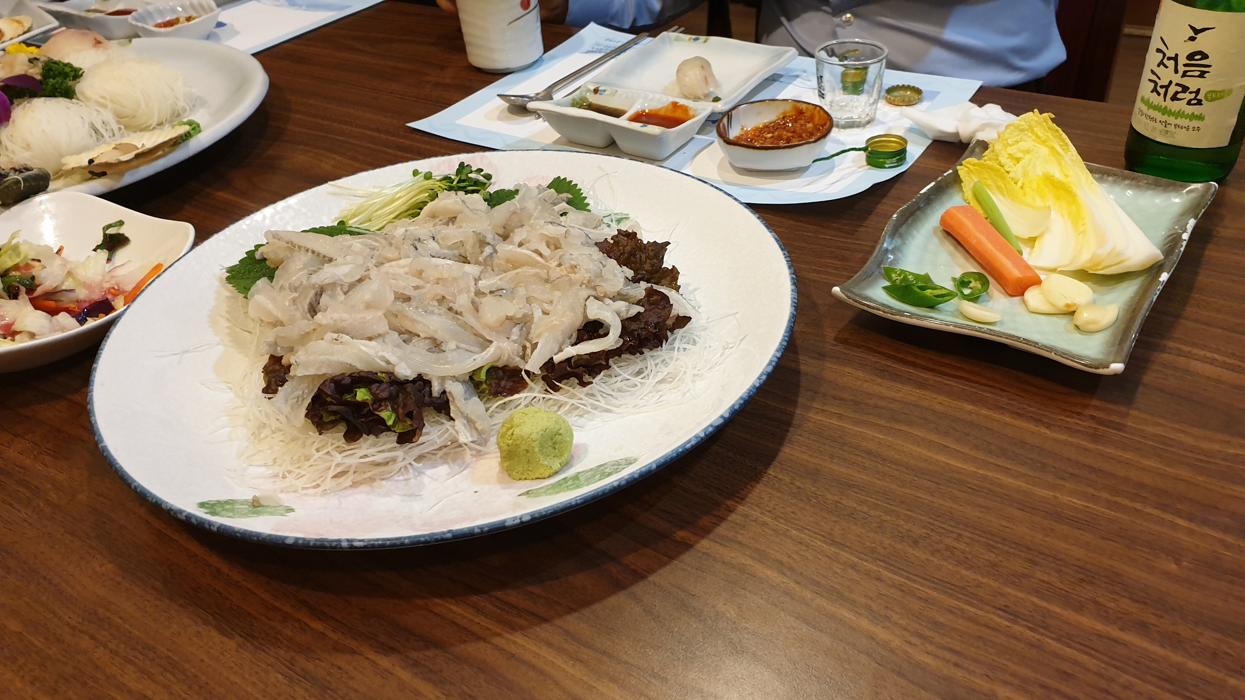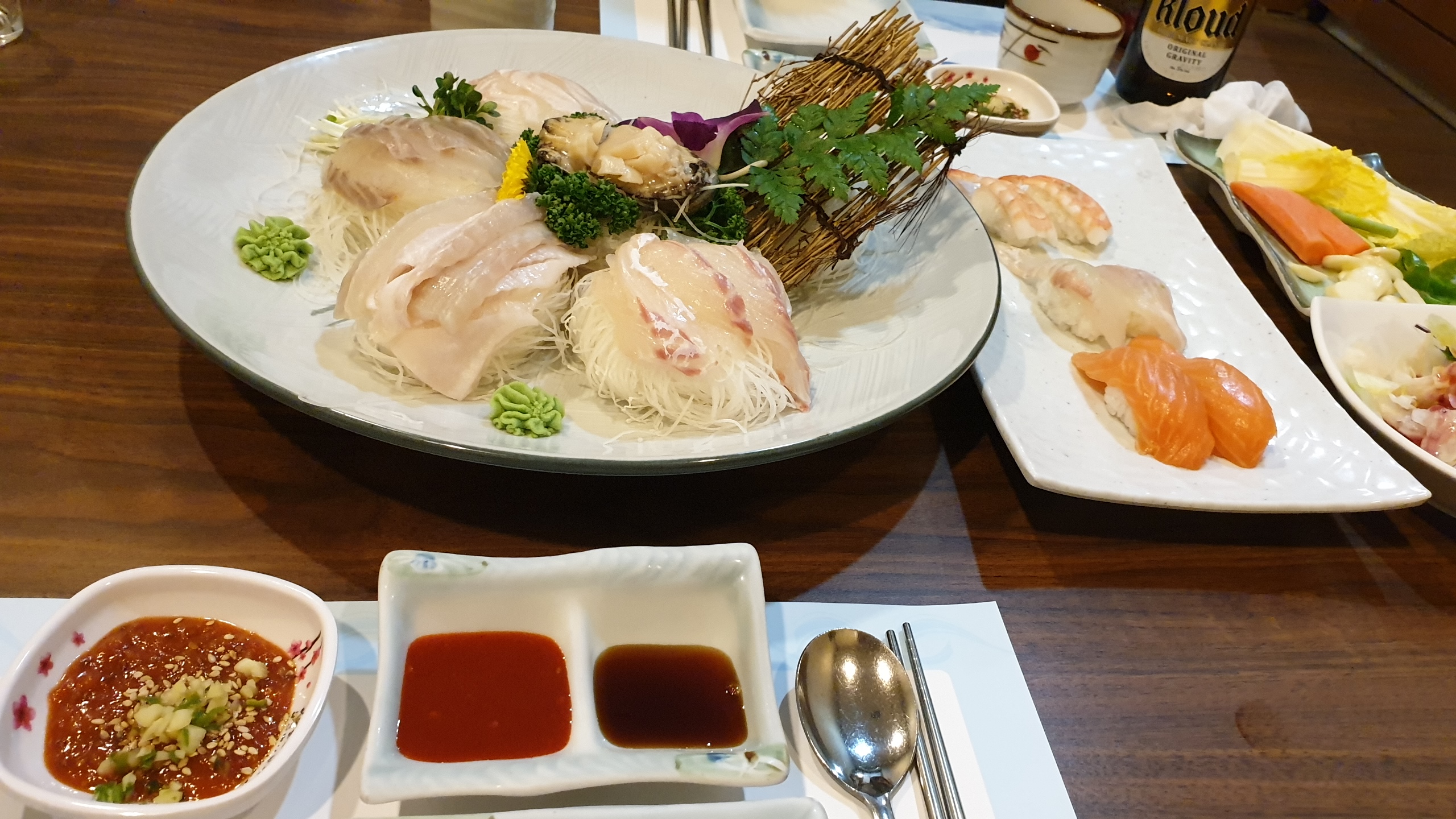 모처럼 여러 가지 음식 푸짐하게 나오는 한국식 횟집에 갔습니다.