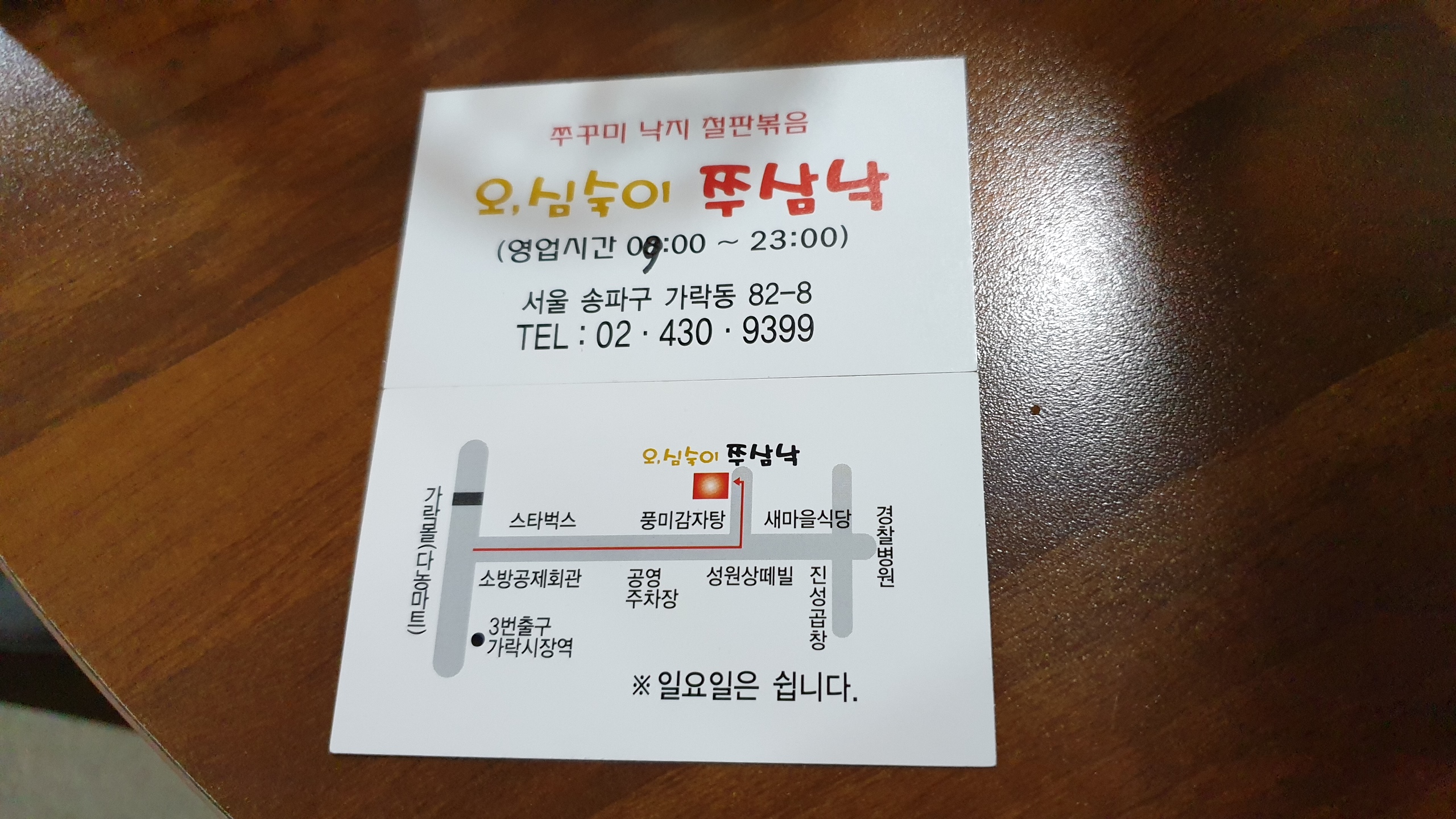 가락시장 가락몰 길 건너에 있는 쭈꾸미 낙지 철판볶음 전문점.